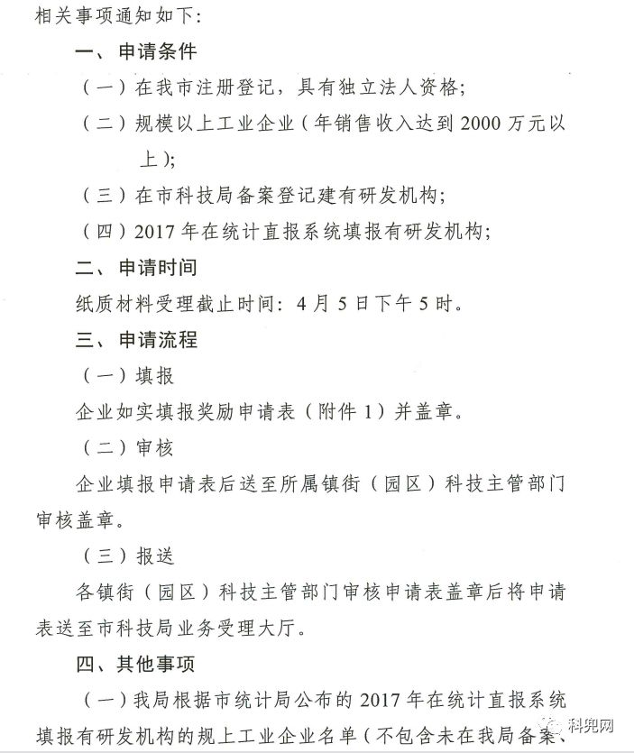 关于受理2017年度规模以上工业企业研发机构建设奖励申请的通知