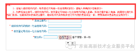 (4)特别提示:如多次填写仍报错,则向市科技局申请,市科技局统一汇总到省厅,找回注册当时填写的组织机构代码证和税务登记号。