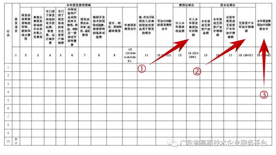3.“明细表”的“合计”行的第19列“本年研发费用加计扣除额合计”等于“合计”行的第14列加上第18列。