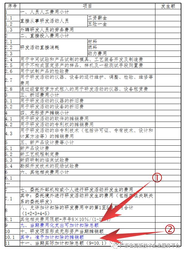 明确“研发项目可加计扣除研发费用情况归集表”的填报