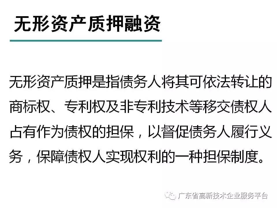 ——是指在借款人以自己、主要股东或关联公司所拥有的知识产权中可以转让的财产权设定质押的基础上,为具有良好的成长性、可靠的第一还款来源的高新技术企业发放的贷款业务。