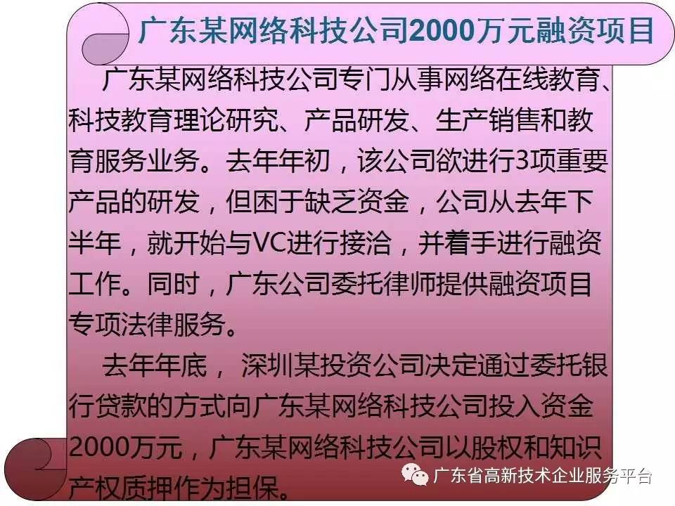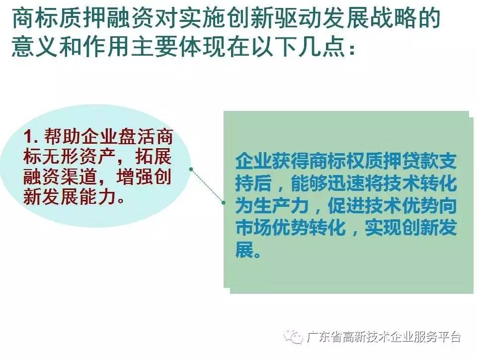 1.企业范围:在广东省辖区内登记注册,具有独立法人资格,以广东为主要纳税地,符合国家有关中小微企业划型标准和产业发展方向,拥有有效发明专利或实用新型专利,持续进行研究开发、生产和服务,运用专利权进行质押融资的科技型企业。