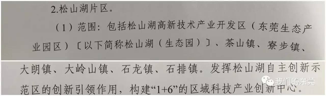 (解读:松山湖这些年的发展有目共睹,吸引了华为等一大波高新企业,发展迅速。如今直接以松山湖为名,划分片区,足见松山湖的地位了。周边的茶山、寮步、大朗、大岭山、石龙、石排,都将受到松山湖的辐射,带来新的发展机遇。)