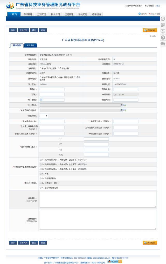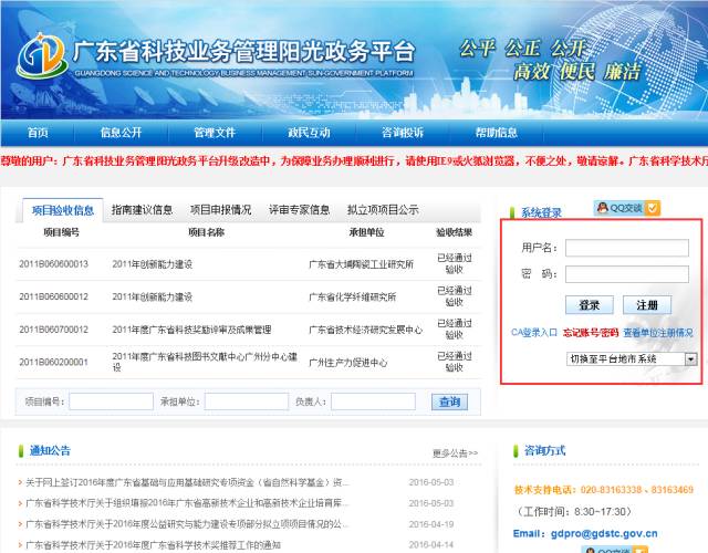 使用申请单位的单位管理员账号进行填报。已有登陆账号的亲可以直接登陆阳光政务平台(http://pro.gdstc.gov.cn/),没有登陆账号的亲,则需要在登录阳光政务平台后,先注册本单位账号。