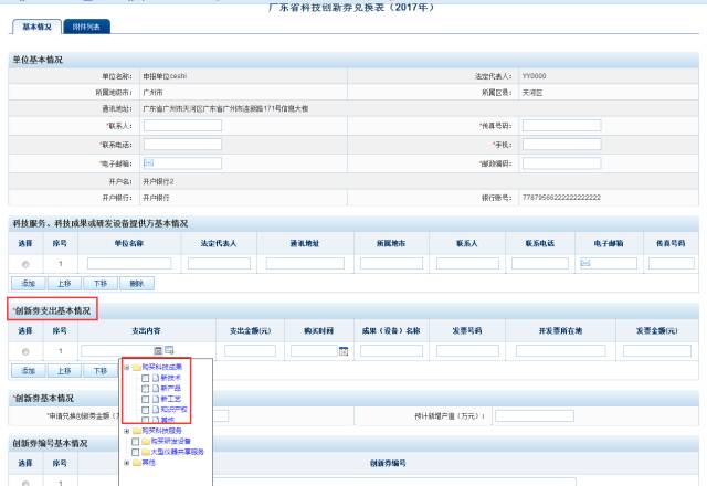 兑换表中“创新券支出基本情况”的支出内容选择“购买科技成果” (下图1)时,