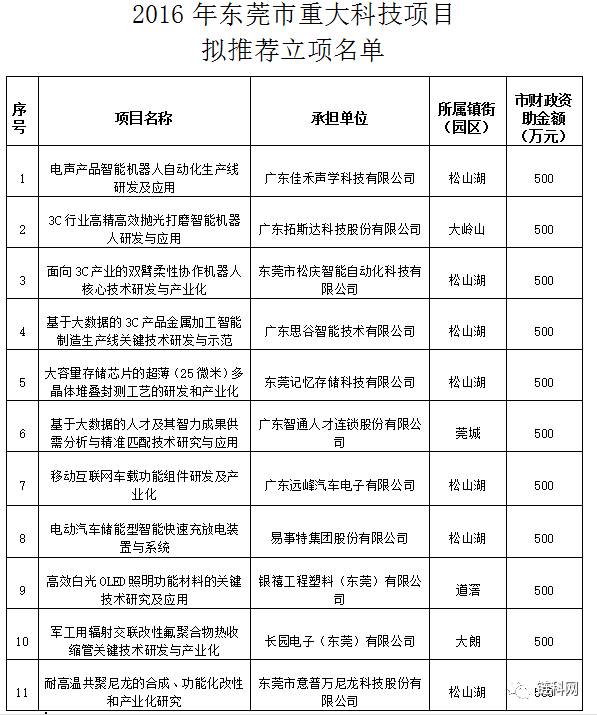 接下来小编将带你深入扒扒东莞市重大科技项目