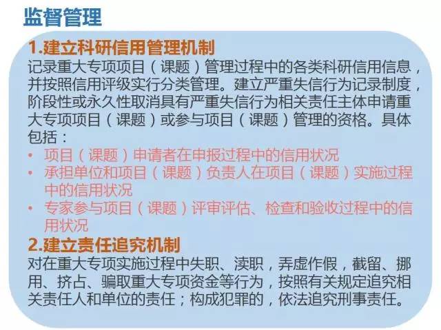 近日,由科技部、发展改革委、财政部三部门共同研究制定了《国家科技重大专项(民口)管理规定》(以下简称“规定”),规定共有12章节,其中对科技重大专项的组织管理和工作流程作出进一步明确,并深入推动科技重大专项的组织实施。本规定自发布之日起施行,并且《国家科技重大专项管理暂行规定》(国科发计﹝2008﹞453号)同时废止。