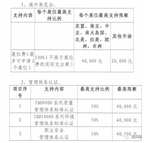 | 展位费(最多可申请2个展位) | 100%(不高于展位费的实际支出额) | 40,000元 | 20,000元 |